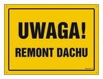 Znak - Uwaga! Remont dachu - 35 cm x 25 cm