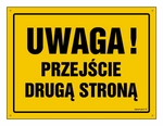 Znak - Uwaga! Przejście drugą stroną - 35 cm x 25 cm