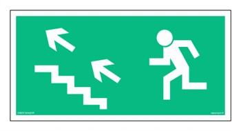 Znak - Kierunek do wyjścia drogi ewakuacyjnej schodami w górę w lewo - 15 x 30 cm