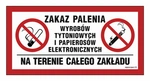 Znak - Zakaz palenia na terenie całego zakładu - 40 cm x 20 cm