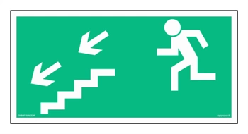 Znak - Kierunek do wyjścia drogi ewakuacyjnej schodami w dół w lewo - 15 cm x 30 cm