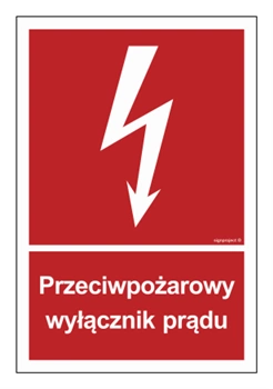 Znak - Przeciwpożarowy wyłącznik prądu - 10 cm x 14,8 cm
