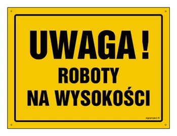 Znak - Uwaga! Roboty na wysokości - 35 cm x 25 cm