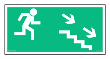 Znak - Kierunek do wyjścia drogi ewakuacyjnej schodami w dół w prawo - 30 cm x 15 cm