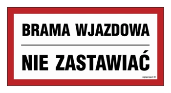 Znak - Brama wjazdowa nie zastawiać 40 cm x 20 cm